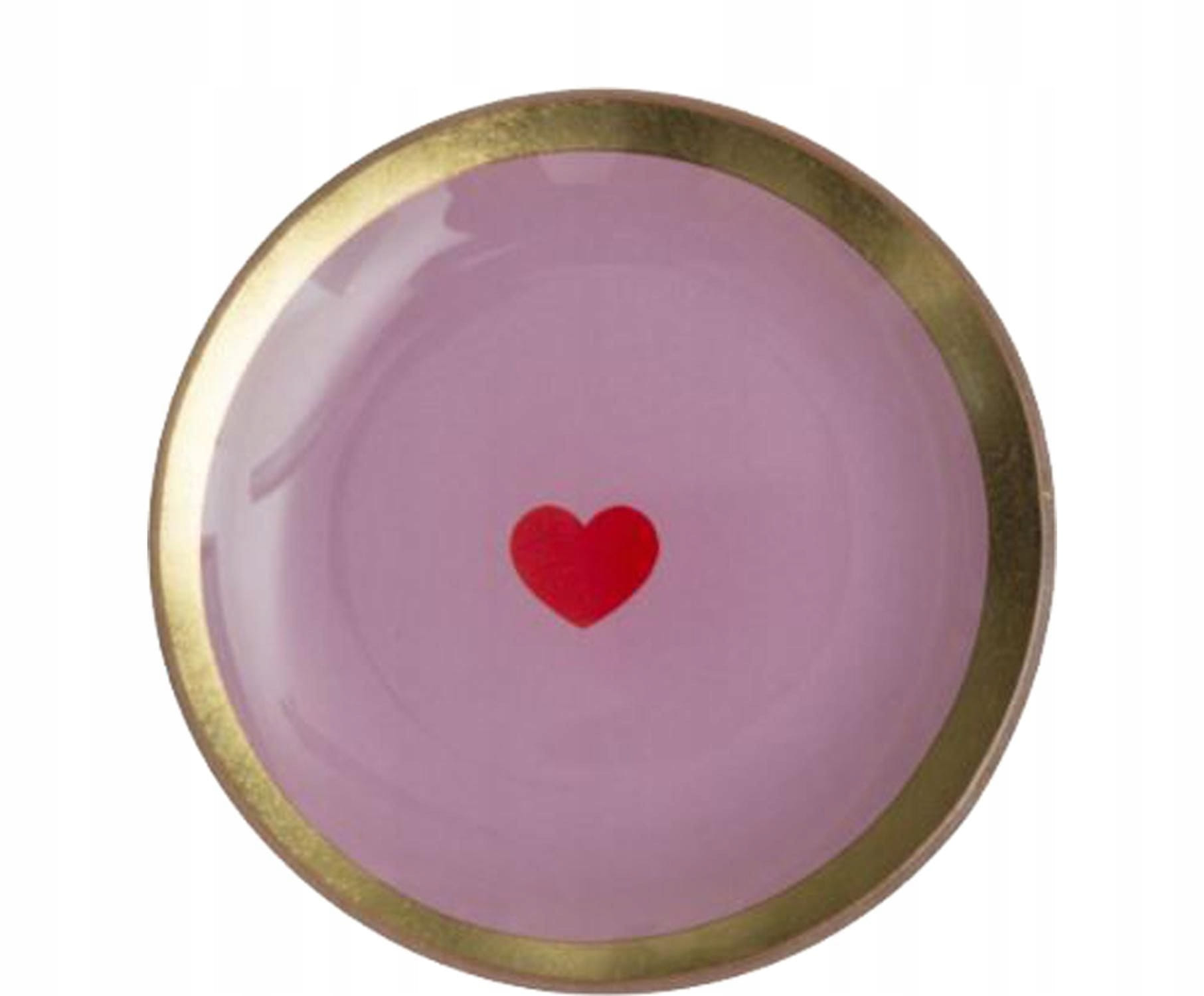 Talerz szklany okrągły serce, talerz dekoracyjny, szkło róż fiolet, 10 cm